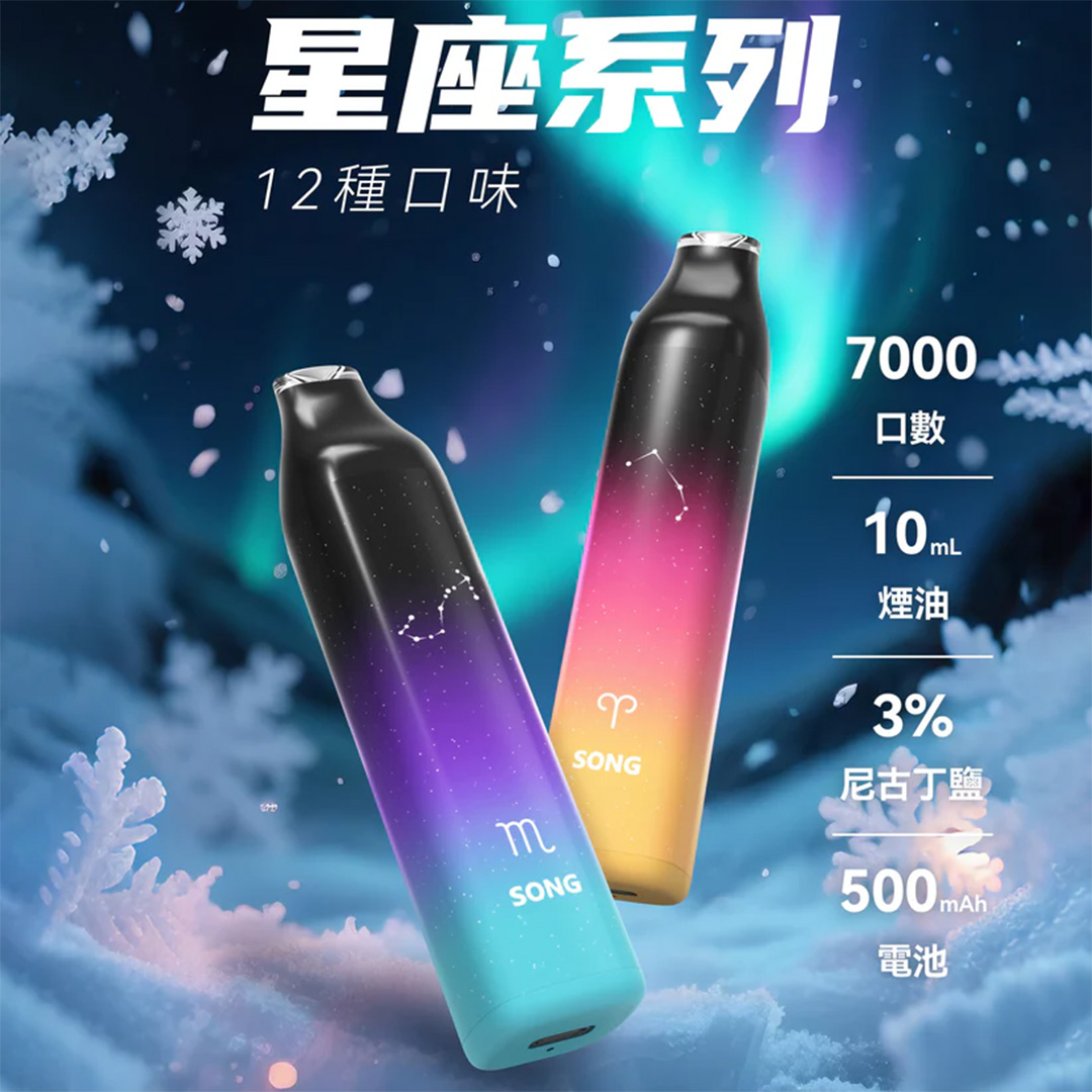 崧星座7000是一款主打颜值与日常体验的一次性电子烟产品。整体采用细长条形机身设计,手握时更加贴合手掌,放入口袋或随身包中也不会显得臃肿,携带十分方便。机身设计灵感来自十二星座主题,每种口味对应不同星座形象与配色,让产品外观多了几分个性和趣味,也更容易被年轻用户接受。